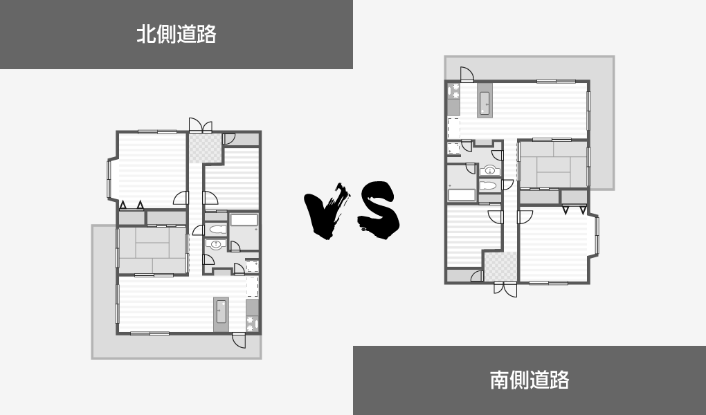 南道路か北道路、どちらにするのかは、図面を引こうと決められたお客様が一番初めに悩むところでもあります。