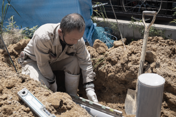 水道工事では、屋外の給水・排水の配管設置のための土木工事から、屋内配管を行います。