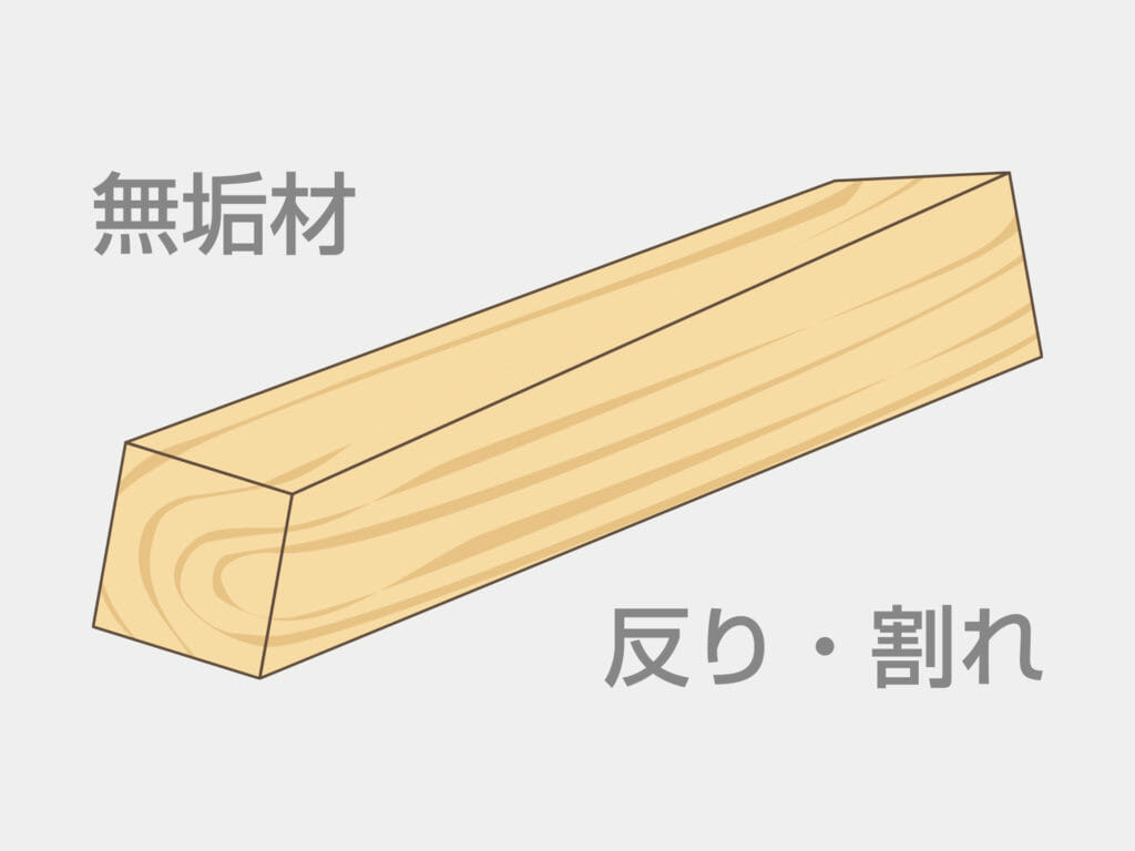 無垢材で建てる注文住宅の場合、極端に変形するような材料を使用することは、あまり考えられませんが、長年にわたる経年変化により無垢材は、反りや・割れがでてしまうのは事実です。