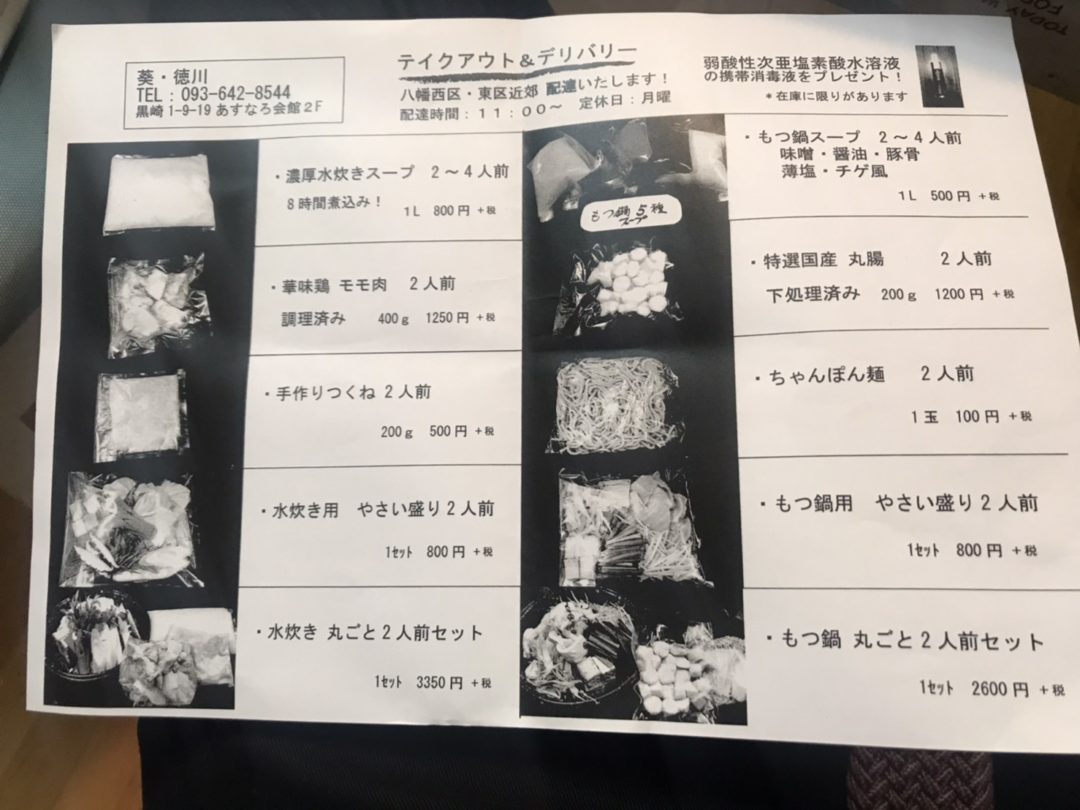 徳川さんでは、もつ鍋のセット・水炊きのセットをテイクアウトとデリバリーの両方で実施されているそうです。