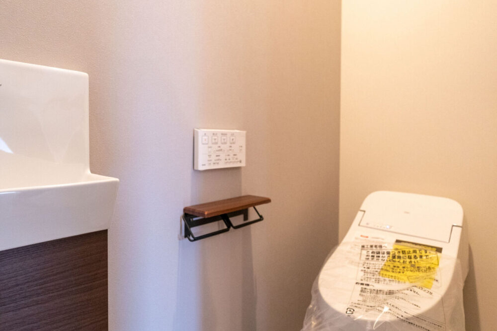 1階、2階ともに洗面化粧台を設置。1階部分は、アースティックの造作洗面化粧台、2階部分は、Panasonicシーライン化粧台を採用しています。2階にも化粧台を置くことで、あわただしい朝の身支度も安心して整えていただけます。