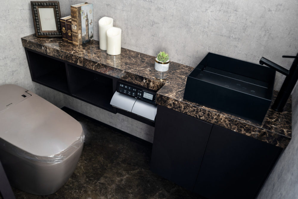 GRAFTEKT(グラフテクト)メルクリオは、陶器のような重厚感と深みのあるテクスチャでありながらキズや衝撃に強く、なにより、特徴的だけど嫌味のない上品な質感が空間をワンランク上質なものへと演出してくれます。